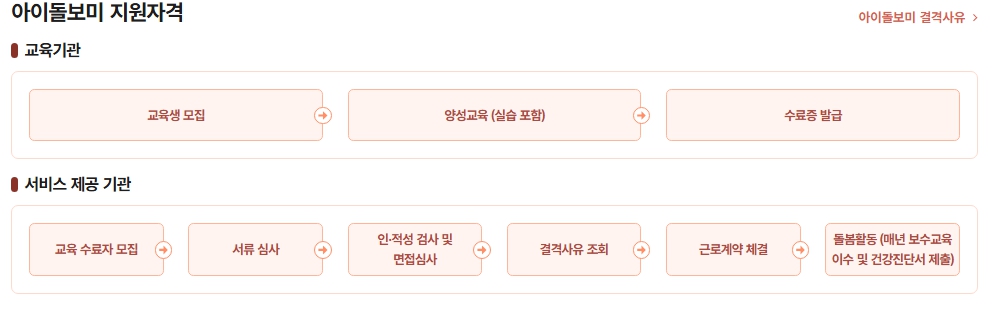 아이돌보미 지원은 연령 제한이 없으며, 신체적·정신적으로 돌봄 업무를 수행할 수 있는 국민이면 누구나 가능합니다. 학력, 경력 등의 조건은 필수사항이 아니지만, 아동 돌봄 관련 경험이 있다면 선발 시 우대됩니다. 지원자는 아동학대·성범죄 경력이 없어야 하며, 건강검진 결과 이상이 없어야 합니다.