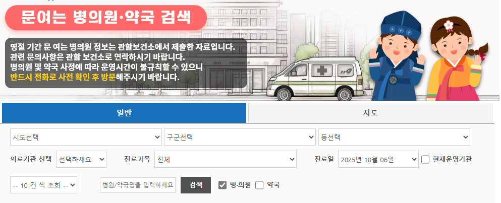 연휴 중 병원·약국 찾기, E-Gen으로 단계별 검색