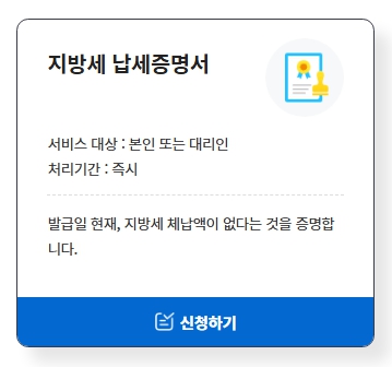 정부24(www.gov.kr) 접속 → 검색창에 “지방세 납세증명서” 입력 → 민원 선택