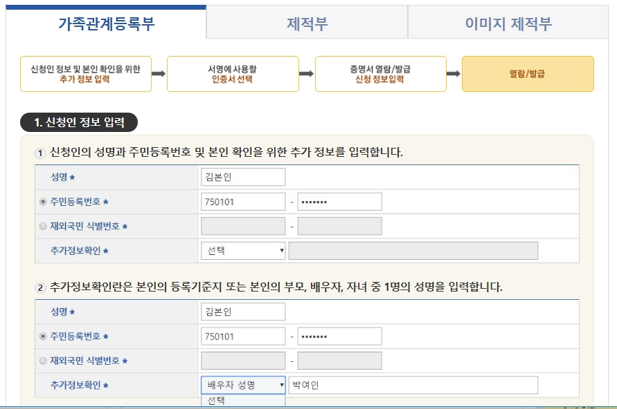 가족관계증명서 인터넷 발급 절차
