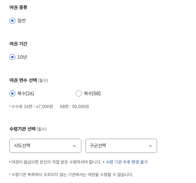 - 여권 재발급 신청 후 수령기관 변경 및 임의 취소는 불가하므로 신청 전 신중하게 선택해야 합니다.