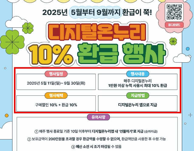 디지털 온누리상품권의 장점을 제대로 누리려면 충전 할인, 정기 환급, 특별재난지역 환급을 동시에 활용하는 전략이 필요합니다. 매주 일정 금액 이상 사용하여 환급을 챙기고, 거주 지역이 특별재난지역에 해당된다면 반드시 추가 환급까지 받아야 합니다. 또한 보유 한도가 200만 원이므로 충전 및 사용 계획을 철저히 관리해야 합니다.