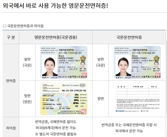 영문면허증은 국내 면허증과 동일한 효력을 가지며, 해외에서도 신뢰도 높은 신분증으로 활용할 수 있습니다.