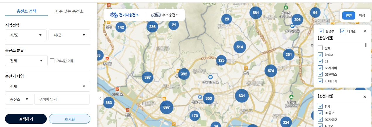 - 전국 모든 전기차·수소차 충전소 현황을 통합 제공