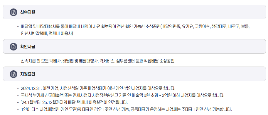 - 전용 사이트: 소상공인 배달택배비지원.kr