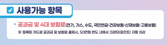 - 크레딧은 공공요금 및 4대 보험 납부 외 사용 불가