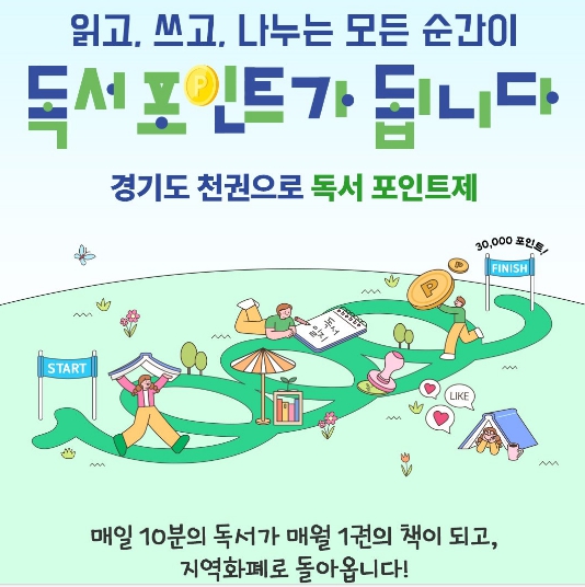 경기도는 2025년 7월부터 독서문화 확산을 목표로 ‘천권으로 독서포인트제’를 시행하고 있습니다. 도민이 꾸준히 책을 읽고 관련 활동을 인증하면 포인트가 지급되고, 이를 지역화폐로 바꿔 사용할 수 있습니다.