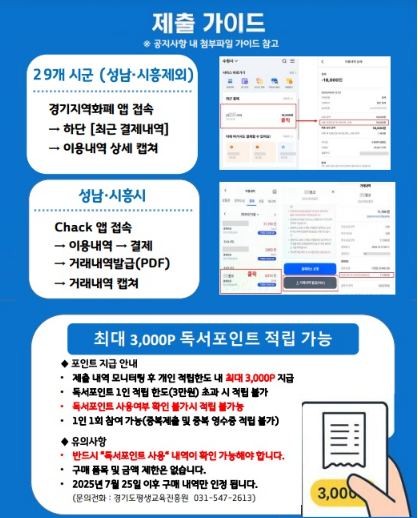 - 이벤트 내용: 경기도 지역서점에서 ‘천권으로 독서포인트’로 결제 후 내역 제출 시, 1인당 최대 3,000P 추가 적립