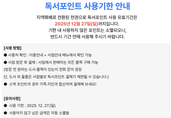 사용처: 도서 전문 가맹점 (자세한 목록은 서점안내 페이지 참고)