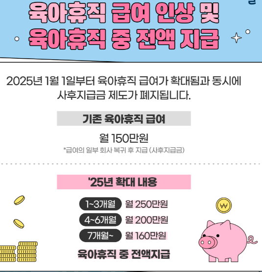 이번 개편 내용은 2025년 1월 1일 이후 사용분부터 소급 적용됩니다. 즉, 이미 올해 초부터 아빠보너스제를 적용받아 육아휴직 중이라면 인상된 금액에 따라 차액이 정산되어 추가로 지급됩니다. 단, 회사의 육아휴직 신고 및 급여 지급 시점에 따라 정산 일정은 다소 차이가 있을 수 있습니다.