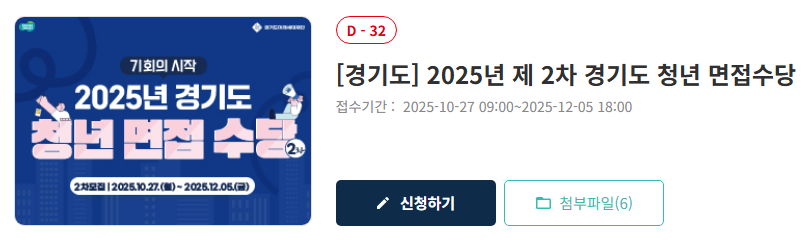 - 거주 요건: 신청일 기준 주민등록상 주소지가 경기도인 청년