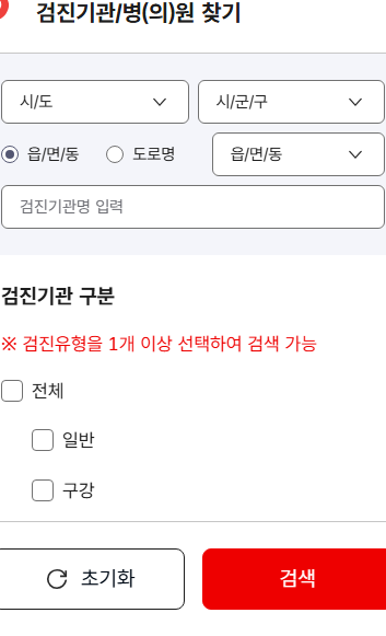 - 공단 홈페이지 접속 → ‘검진기관 찾기’ 메뉴 클릭