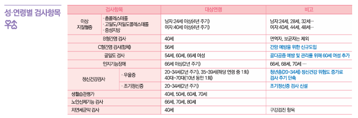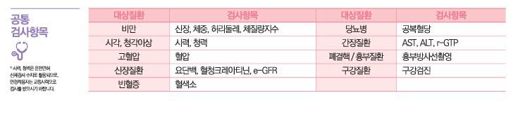 - 직장가입자: 비사무직 근로자는 매년, 사무직 근로자는 2년에 한 번 검진