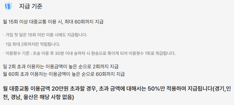 이용자는 월 이용 금액에 따라 환급을 받을 수 있으며, 매월 60회까지의 이용 내역이 환급 대상에 포함됩니다.