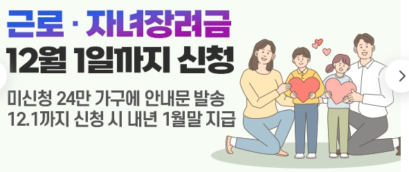 12월 1일 마감일까지 남은 기간이 많지 않습니다. 근로·자녀장려금은 단순한 현금 지원을 넘어, 일하는 국민의 경제적 자립과 삶의 질 향상을 돕는 중요한 제도입니다. 아직 신청하지 않았다면 지금 바로 확인하고 꼭 신청하시기 바랍니다.