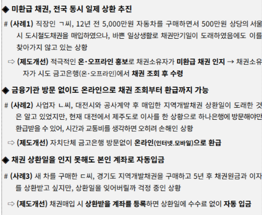 최근에는 비대면 서비스가 잘 갖춰져 있어, 본인 인증만으로도 과거의 채권 매입 이력과 현재 환급 가능 금액을 한눈에 확인할 수 있습니다.