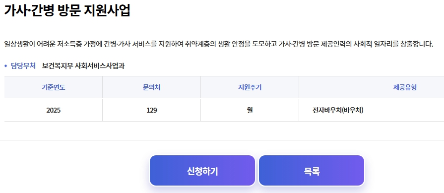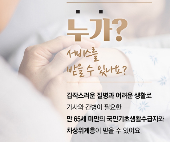 서비스는 가사와 간병이 동시에 필요한 취약계층을 중심으로 제공되며, 대상자의 생활 패턴과 건강 상태를 고려해 맞춤형으로 운용된다는 점이 장점입니다.
